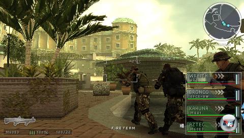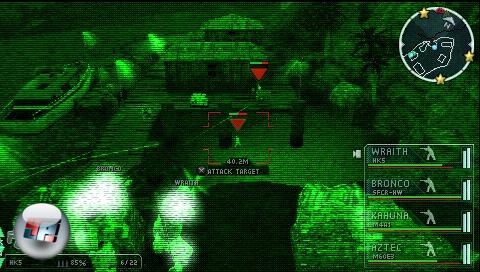 Das liegt vor allem am etwas trägen Cursor, der um Hindernisse herum navigiert werden muss und an der für PSP-Verhältnisse ungewohnt komplexen Steuerung. In der Kampagne fallen diese Probleme seltener auf, da ihr es nur mit relativ linear patroullierenden Gegnern zu tun bekommt. Dort ähnelt das Spiel eher einem Puzzle, bei dem ihr die Route der Gegner auskundschaftet, eure Männer in Ruhe in Stellung bringt und dann zuschlagt. Im Multiplayer-Modus dagegen zählt jede Sekunde, da euer Gegner ein angreifender Mensch und keine stumpfe KI-Wache ist. Offenbar kommt auch bei den anderen Spielern der Online-Modus nicht so gut an wie in den Shooter-Vorgängern, denn statt mehreren hundert Mitspielern traf ich im Server-Browser meist nur auf eine Hand voll Gegner. Mit ein wenig Map-Kenntnis und der nötigen Abgebrühtheit entwickeln sich aber trotz der gewöhnungsbedürftigen Steuerung spannende Matches.