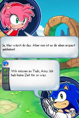 Die Story erreicht zwar nicht die epischen Ausmaße im bekannten BioWare-Stil, aber sie hat Überraschungen parat und unterhält auf gutem Niveau: Man fühlt sich sehr schnell als Teil einer ebenso spannenden wie witzigen Handlung, da die knackigen Dialoge nicht nur Anspielungen auf alte Sonic-Teile, sondern auch herrliches Gezänk unter den Freunden anbieten: Amy ist verliebt in den blauen Igel, will es aber nicht zugeben; Rouge freut sich diebisch, wenn Sonic der weiblichen Konkurrenz über den Mund fährt.
