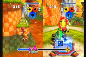 Grafisch glänzt Sonic Heroes vor allem durch enormes Spieltempo, grenzenlose Weitsicht und Schwindel erregendes Leveldesign. Auf PC und GameCube bekommt ihr sogar ein paar exklusive Grafikeffekte geboten. Die PS2-Fassung hat hingegen mit waberndem Texturenmatsch sowie fehlenden Grafik- und Sound-FX zu kämpfen. So gibt es auf der Sony-Konsole im Vergleich zu den drei anderen Fassungen keine Echtzeitschatten, es fehlen Animationen und Objekte und auch bei den Geräuschen wurde dezent eingespart. Einen flotten 60Hz- sowie PAL-Balken-freien 50Hz-Modus bieten hingegen alle Versionen. Nennenswerte Slowdowns sind uns trotz mahnender Kollegen ebenfalls bei keiner Fassung aufgefallen. Mit unschönen Clipping-Fehlern und vereinzeltem Objekt-Popup müssen aber alle Spieler leben.