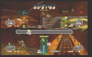 [GUI_SPIELLINKS(align=left,SPIELID=7488)]Wer gerade ein bis drei Freunde zur Hand hat, ist mit den hektischen Emeraldjagden, den taktischen Team- oder kurzweiligen Splitscreen-Duellen auf einer der 16 abgefahrenen Rennstrecken weit besser beraten, auch wenn die ohnehin schon mäßige Übersicht via geteiltem Bildschirm nochmals leidet. Zumindest bleibt das Geschehen durchwegs flüssig und Pop-Ups gibt es auch im Einzelspielermodus. Die grafische Präsentation kann sich durchaus sehen lassen.