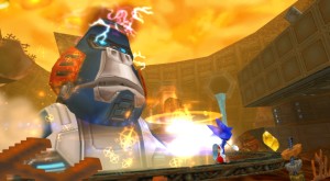 erinnert: In einer runden bis halbrunden Arena versucht ihr im Wettkampf gegen euren Konkurrenten den Schwachpunkt von Feinden wie einer Mechano-Schildkröte oder Metal Sonic zu treffen – wer das öfter schafft, gewinnt die Runde.