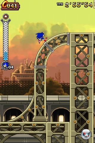 Der Großteil des Spiels folgt dem Erstling auf dem Fuße, und zwar im bestmöglichen Sinne: 2D-Hochgeschwindigkeitsaction pur! Sonic rast mit herzderhythmisierender Geschwindigkeit durch Pilz-, Maschinen- und Korallenlevels, düst durch sich teilweise über beide Bildschirme erstreckende Loopings, schwingt sich an Lianen entlang, wird von hilfreichen Bäumen an langen Ast-Armen durch den Level geschleudert oder von Sprungpads weit in die Luft befördert. Neu sind 3D-Szenen, die nahtlos in die 2D-Abschnitte integriert sind: So sitzt ihr z.B. in einer Lore, unter der auf einmal der Boden wegbricht – einen kurzen Sturz später landet ihr wieder in dem Wagen, die Perspektive schwenkt, und ihr steuert das Gefährt kurz aus der Ego-Ansicht, bevor es durch eine Wand bricht und die Ansicht -shwuuuuuuun!- wieder um 90° in der Z-Achse gedreht wird. Cool! Das alte Problem bleibt aber erhalten, denn in diesen Abschnitten gibt es nur zwei Arten von Gegnern: abwesende und im Weg stehende. Letztere sind die nervenden, schließlich sind sie im Geschwindigkeitsrausch kaum auszumachen, man bemerkt sie nur dadurch, dass Sonic auf einmal keine Ringe mehr mit sich trägt – hier hilft nur Auswendiglernen. »Abwesende« bezieht sich darauf, dass es hier im Vergleich zu früheren Spielen (man ziehe hier zum Vergleich Sonic 2 heran) verdammt wenig Feinde gibt – gelegentlich nicht mehr als eine Hand voll im Level! Die Welten sind meist auf kreative Durchquerung in Höchstgeschwindigkeit ausgelegt, weniger auf Kampf; oft genug sind die Gegner sogar geskriptet, Sonic aus dem Weg zu gehen – z.B. wenn er über Wasser rennt.