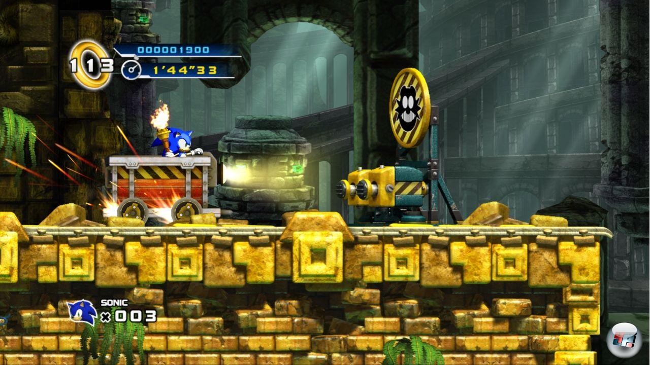 Dieses Sonic versteht sich nicht nur als neues Abenteuer, sondern auch als Best-of der frühen Teile. Von daher ist es kaum verwunderlich, dass die Entwickler nicht nur beim Spiel-, sondern auch beim Leveldesign auf bewährte Elemente zurückgreifen. Die Abschnitte, 16 an der Zahl, orientieren sich mit ihren vier Welten an den Klassikern – auch wenn die Green Hill Zone jetzt Splash Hill heißt, die Wurzeln sind mit den Karobergen, den Palmen, den bissigen Fischen und den ballerfreudigen Geckos unverkennbar. Auch Casino Street, Lost Labyrinth und Mad Gear sollten jedem Sonicologen vertraut vorkommen. Am Ende jeder Welt wartet Dr. Robotnik (jaja, Eggman, bwäch!) auf seine verdiente Abreibung, wobei sich auch er an früheren Inkarnationen orientiert. Kurz gesagt: Das Spiel kommt einem im Großen und Ganzen bekannt vor, bietet aber genug Eigenständiges (wie das Kugel-Rollen, die Lorenfahrt oder die Kartendreh-Minigames), um nicht ganz als Selbstklau durchzugehen. Genau wie seine Mega Drive-Vorbilder ist S4 nicht besonders lang, mehr als eine gute Stunde dürfte ein Pad-Kenner kaum brauchen – was auch daran liegt, dass das Spiel etwas zu leicht ist. Zwar gibt es einige gemeine Stellen, an denen man fast unweigerlich
