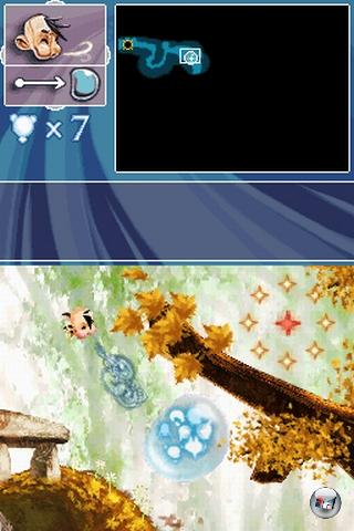 Die Interaktion besteht darin, dass ihr als Mini-Schamane völlig frei durch den Level fliegen könnt. Das wäre an sich nicht sonderlich spektakulär, aber als Bonus verfügt ihr über eine Superpuste, mit der ihr eine Blase voller Seelen von Levelstar zu Levelende windet; in der Luft schwebender »Sternenstaub«, der weitere Level freischaltet, weist euch den direkten Weg da hin. Klingt einfacher als es ist, denn zum einen folgt die Blubber den Trägheitsgesetzen, was präzise Richtungsangaben natürlich herausfordernd macht. Zum anderen sind die Levels voller mehr oder weniger aufdringlicher Hindernisse: Das beginnt mit klebrigen Ranken, geht über Gegenwind und spitze Steine weiter und hört bei den mannigfaltigen Feinden nicht auf. Anfangs sind die Gegner ein Klacks, ein Tippser auf einen nassforschen Uhu befördert ihn kullernd aus dem Bild. Aber was macht man mit einem Feuerdämon, der partout nicht aus dem Weg gehen will?