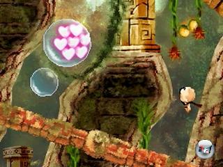 Nicht alle Gegner sind euch per se feindlich gesonnen, manche sind sogar sehr nützlich, auch wenn es auf den ersten Blick nicht so scheint: Hin und wieder kommt es z.B. vor, dass unerwartet aus dem Boden schnellende Affen zur Blase greifen und sie an anderer Stelle des Levels wieder loslassen. Gelegentlich müsst ihr diese organisierte Kriminalität nutzen, um weiterzukommen, wenn der Weg sonst unpassierbar ist. An anderer Stelle sind diese Gesellen pure Plagen, wenn sie Seelentresor etwa zum Levelanfang zurückschleppen. Die anderen Widersacher erfordern teilweise Sonderbehandlung, bevor sie die Segel streichen: Bei Mücken oder Vögeln reicht ein Tippser mit dem Stylus, um sie loszuwerden, manche verlangen nach einem Schnitt mit der Tigermaske – z.B. der Gecko, dessen klebrige Zunge so kein Problem mehr darstellt.