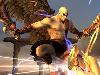 Freunde der Arcade-Variante (Gegner, Gegner, Gegner, irgendwann stärkerer Gegner, gekrönt vom fiesen Boss) werden ebenfalls bittere Tränen des Verlustes vergießen, denn auch dieser Klassiker tummelt sich nirgends auf der UMD. Die Alternative wäre das »Schnelle Spiel« in dem alle 28 Fighter (plus Bonuskämpfer, den man selbst anlegen darf) von Anfang an freigeschaltet sind – inkl. der beiden Neuzugänge Geo Dampierre und Kratos. Letzterer passt hervorragend in das Klopper-Line-Up: Begleitet von einem Soundtrack, der an seine glorreichen PS2-Abenteuer angelehnt ist, nutzt der Spartaner viele seiner bekannten Angriffe und Special Moves inkl. Energiebarriere, Pegasus-Flügen, Blitzattacke mit den Chaosklingen und dem Schwert des Zeus. Das genaue Gegenteil davon ist Dampierre, der nicht nur einen Besorgnis erregend bizarren Bart trägt, sondern auch Erinnerungen an die größte Plage aus Tekken 3 weckt – Dr. Boskonovich. Genau wie jener kriecht Dampierre nämlich vorzugsweise am Boden herum, rollt sich hin und her und greift immer recht unerwartet mit seinen beiden kleinen Messern an. Man gewöhnt sich an den Nervsack – ein Nervsack bleibt er aber trotzdem!