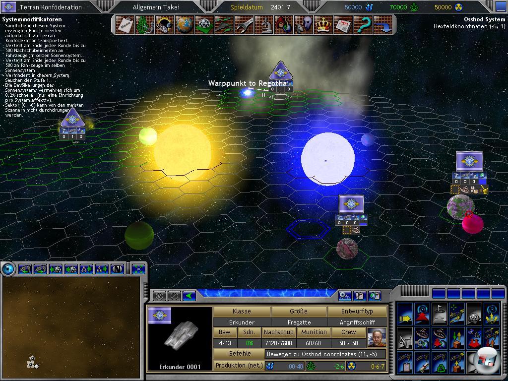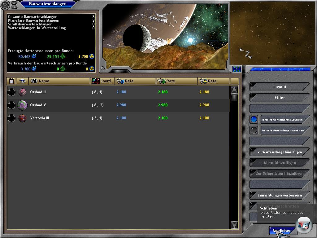 Das liegt auch daran, dass bestimmte Funktionen schlicht viel zu umständlich sind. Das Bewegen der Raumschiffe etwa, die sich nicht einfach per Mausklick durchs in Sektoren aufgeteilte All dirigieren lassen. Hier braucht ihr immer noch ein zusätzliches Menü bzw. einen Button. Wer im virtuellen Raum auf einen Planeten klickt, gelangt nicht wie sonst üblich direkt in dessen Baumenü; auch dazu ist ein weiterer Button nötig. Auch die Menüs für Produktion könnten komfortabler sein, da sie zwar über allerhand Filter aber nicht über eine zentrale Ansicht verfügen, was gerade wo gebaut wird. Immerhin zeigt euch eine Anzeige am Rundenende, welche Schiffe noch ziehen müssen. Direkt zu ihnen wechseln, geht aber wieder nicht.
