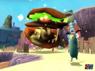 Auch die anderen Minispiele, von denen es gerade einmal vier Stück gibt, sind alles andere als prickelnd und die Lust, SpongeBob, Patrick und Plankton mehr als einmal durch die linearen Storykapitel zu schleusen, um verpasste Schlafsamen einzusammeln, eher gering. Dabei sind die einzelnen Abschnitte spielerisch eigentlich recht abwechslungsreich: Ihr bestreitet kurzweilige Checkpoint-Rennen, rast an eine Rakete gefesselt durchs Weltall, hüpft durch den Verdauungstrakt eines Alaska Ochsenwurms, flieht vor einem gefräßigen Krabbenburger oder versucht Bikini Bottom als Riesen-Plankton dem Erdboden gleich zu machen bzw. ihn als prügelnden Seesternmann oder fliegender Schwammkopf daran zu hindern.