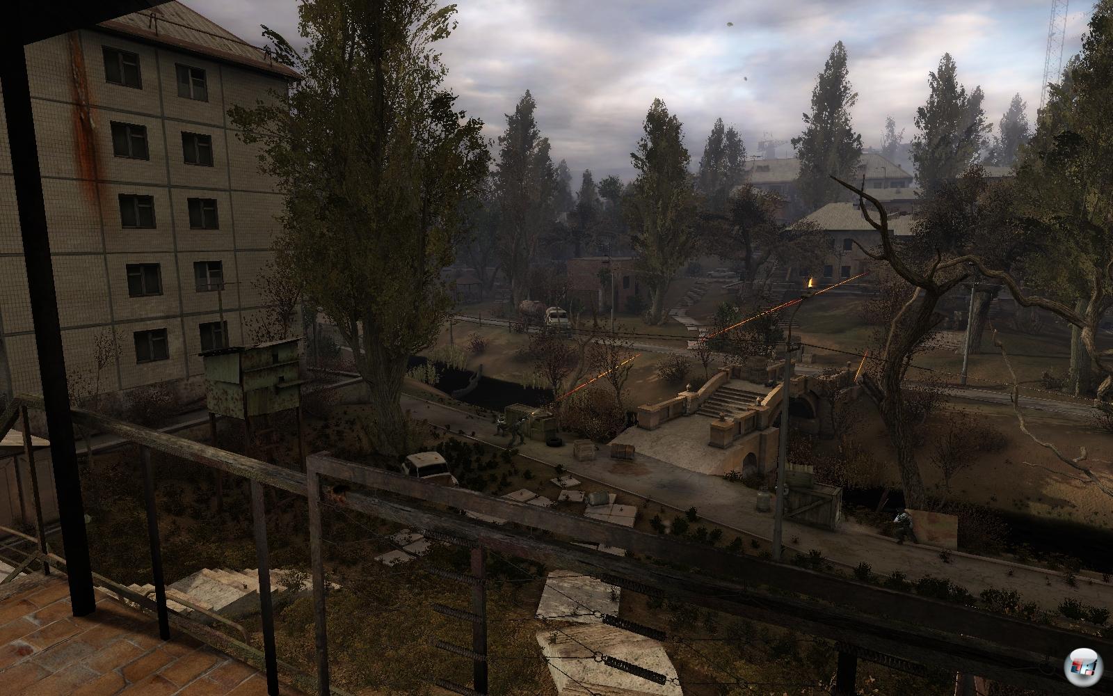 Trotz seiner überaus ansehnlichen Landschaft simuliert Stalker keine einheitliche Weite. Sprich: Es wird beim Betreten neuer Gebiete nachgeladen. Die sind immerhin so groß, dass man gerade aufgrund der vielen Hol- & Bringaufträge durchaus gerne auf Reisebeschleunigung zurückgreift. Es gibt +++ABSTURZ+++ keine Fahrzeuge, aber dafür leiten euch Guides sehr schnell an bekannte Orte: Einfach ansprechen, eventuell einen Obolus bezahlen und schon ist man an seinem Zielort; hinzu kommen teleportierende Anomalien.