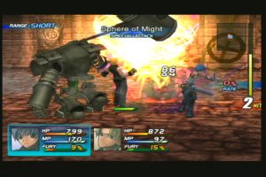 Gewöhnungsbedürftig ist hingegen das Fehlen gegnerischer Lebensenergieanzeigen im Kampf. Stattdessen wird lediglich ein Wutbalken eingeblendet, der darüber Aufschluss gibt, ob ein Kontrahent momentan blocken kann oder nicht. Wer hingegen wissen will, wann sein Widersacher den Geist aufgibt, muss dies über einen speziellen Scan-Befehl tun, der nicht nur Zeit kostet, sondern bei besonders harten Brocken auch gerne versagt. Interessant ist jedoch, dass man nicht nur nach Verlust sämtlicher Trefferpunkte (HP), sondern auch beim Versiegen seiner Magiepunkte (MP) den Löffel abgibt, was natürlich auch auf eure Gegner zutrifft. Angesichts der Tatsache, dass fast jeder Angriff HP und/oder MP verbraucht, eine nicht zu unterschätzende Komponente.