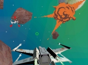 | In den 3D-Abschnitten geht es ordentlich zur Sache – ihr dürft sogar berühmte Raumschiffe wie den X-Wing fliegen. |