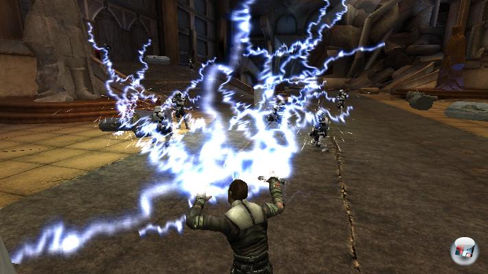 Macht mächtig Druck: Starkiller hält sich nicht mit Jedi-Freundlichkeiten auf, hier wird beim falschen Hüsteln sowohl der Mega-Blitz ausgepackt!