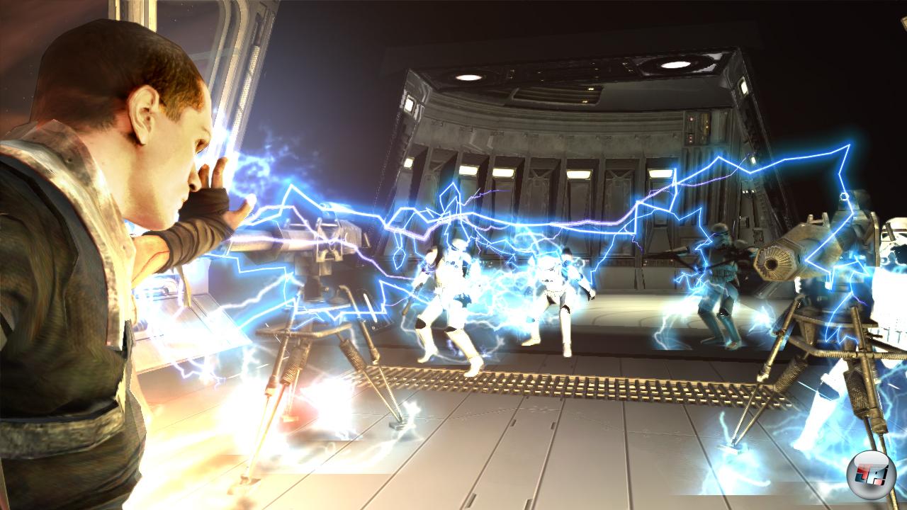 Das Spiel heißt nicht umsonst »The Force Unleashed« (TFU): Hier geht es nicht darum, bedächtig X-Wings aus Tümpeln zu hieven oder vereinzelte Sturmtruppler zu Boden zu werfen. Nein, hier werden Blitzgewitter im Akkord verteilt, AT-STs werden zu handlichen Paketen