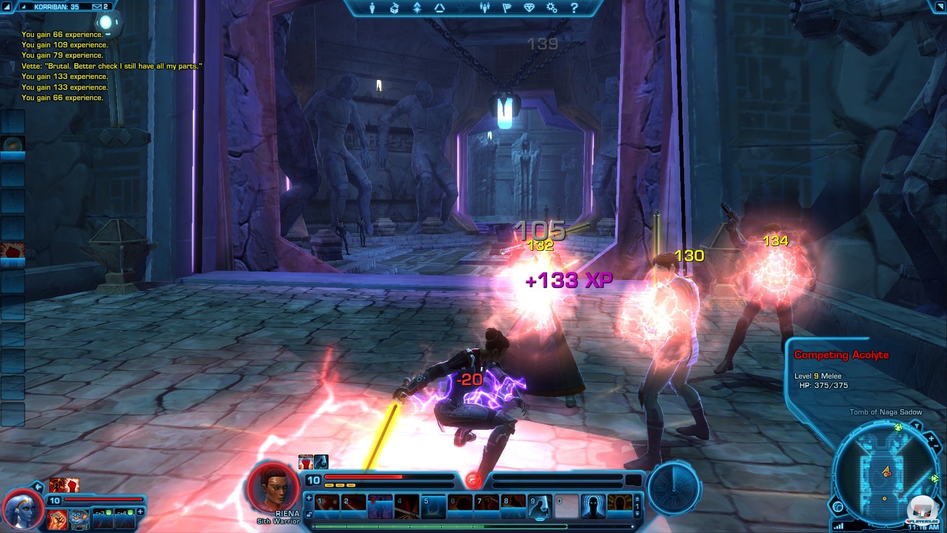 Zum Glück gab es gleichzeitig auch Server, auf denen die Last nicht so hoch war, so dass ich die Gelegenheit beim Schopf packte und mir die Wartezeit mit den anderen Imperiums-Klassen Sith-Krieger, Imperialer Agent und Kopfgeldjäger überbrückte. Diese Figuren habe ich zwar vorerst nur bis kurz nach der Spezialisierung gespielt (also im Bereich zwischen Level 10 und 13), doch es lassen sich bereits einige Gemeinsamkeiten und natürlich auch Unterschiede feststellen.