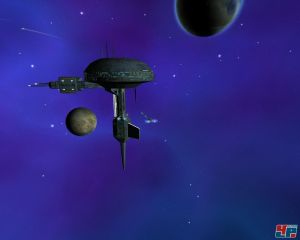 Grafisch kann Star Wolves trotz brauchbarer 3D-Grafik in verschiedenen Auflösungen leider nicht ganz mit Homeworld 2 oder Nexus mithalten, was in erster Linie daran liegt, dass es weniger detailliert rüber kommt. Die Raumschiffe weisen v.a. aus der Nähe betrachtet weit weniger Einzelheiten auf als etwa bei der Konkurrenz. Erst bei einer höheren Auflösung als 1024×768 kommt Freunde auf. Die Explosionen erhellen den ganzen Bildschirm und sind recht beeindruckend, beschädigen eure Schiffe aber nicht, wenn ihr in der Nähe rumfliegt. Auch die Hintergründe wirken nicht so plastisch wie etwa bei Nexus. Unterhaltet ihr euch mit einer Person, bleiben die Gesichter leider unbewegt, manchmal gibt’s gar nur ein Emblem. Die Zwischensequenzen sind leider nur in Spielgrafik gehalten.