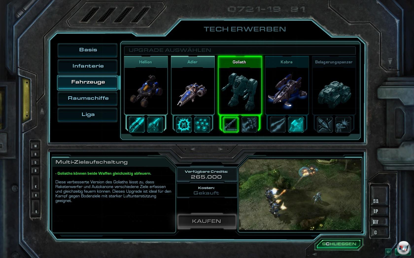 Die Hyperion ist nicht nur die Bühne für Gespräche, sondern Dreh- und Angelpunkt der Kampagne, wobei Einzel- und Multiplayer-Modus strikt voneinander getrennt sind. So gibt es im Singleplayer-Feldzug diverse bekannte Einheiten, die nicht im Multiplayer-Modus zur Verfügung stehen; z.B. Sanitäter, Goliath (zweibeiniger Mech), Adler, Feuerfresser und mehr. Diese strikte Trennung ist zwingend nötig, da man in der Kampagne permanente Upgrades für die Truppen kaufen kann. Als Währung fungieren Credits, die man als Bonus für die Missionen bekommt. Jede Einheit lässt sich jeweils zweimal erweitern und man kann selbst entscheiden, was man kauft. Sollen die Marodeure mit betäubender Schockmunition ausgestattet werden? Ist es sinnvoll, dass die Belagerungspanzer weniger Kollateralschaden anrichten oder sollen alle Terraner-Gebäude mit einem Brandschutz plus Selbstreparatur bis 50% versehen werden? Jedes Technik-Upgrade wird mit einem kleinen Video illustriert, um die positiven Effekte zu zeigen.