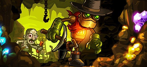 [GUI_PLAYER(ID=107073,width=400,text=Steam World Dig ist ein stimmungsvoller Plattformer, der das Graben à la Boulder Dash mit Erkundungsreizen eines Action-Adventurtes verknüpft.,align=right)]Das Licht flackert, die Zigarre qualmt und der kleine Roboter erinnert mit seinem Hut und dem grimmigen Blick fast an Django. Allerdings trägt er keinen Colt, sondern eine Spitzhacke oder später einen Bohrer; beides hilft gegen all die Käfer und Verrückten, die in den Tiefen der Mine lauern. Zu Beginn konnte er sich lediglich in vier Richtungen durch den Erdboden hacken, mittlerweile kann er dank cooler Stiefel nicht nur sprinten, sondern auch weiter sowie direkt an Wänden hoch springen und sich mit seinem „Steam Jump“ in die Höhe katapultieren – sieht nicht nur cool aus, sondern flutscht dank präziser Steuerung (Analogstick oder Steuerkreuz) intuitiv!