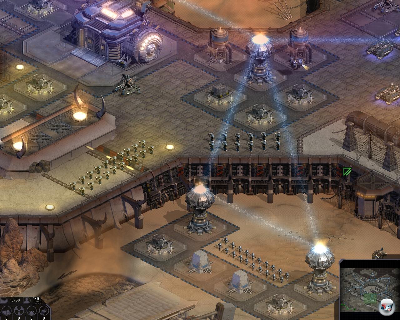 Dabei fordert SunAge das Erschließen neuer Ressourcenarten nicht nur, weil euch fortschrittliche Technologien sonst verschlossen bleiben; die Rohstoffquellen liefern zudem vergleichsweise wenig Material. Will heißen: Wer nicht im Eiltempo seine Basis erweitert, wird schnell eingekesselt, weil er im schlimmsten Fall nur noch einen Rohstoff übrig und damit schwache Einheiten zur Verfügung hat, während sich der Gegner in Ruhe ausbreiten kann. Schließlich ist es wegen des benötigten und für alle sichtbaren Stromnetzes unmöglich, in einem versteckten Winkel eine zweite Basis zu errichten. Das macht vor allem Online- oder LAN-Gefechte zu unausgeglichenen Partien, wenn die Streithähne nicht gleich stark sind. Im Besonderen heißt das: Der aggressivste Spieler macht das Rennen – buchstäblich. Denn ein überlegter Rush ist die wirkungsvollste Waffe, selbst gegen nur minimal schwächere Gegner. Weil die wahlweise vom Programm gesteuerten Feinde eine ähnliche Taktik verfolgen und nicht an das eigene Können angepasst werden dürfen, haben es Einsteiger zudem schwer, sich Schritt für Schritt die wichtigen Grundlagen zu erarbeiten. Nicht zuletzt wirken gerade mal zwei Mehrspieler-Varianten (Jeder-gegen-Jeden und Zwei-gegen-Zwei) sehr sporadisch. Kein Wunder: Die Multiplayer-Anbindung wurde erst nach dem US-Start per Patch nachgereicht. Sie soll laut Entwickler aber immerhin ausgebaut werden.