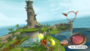 Primatenland, außerdem planen zwei Kinder verfeindeter Affenclans eine Hochzeit – damit das Ganze nicht wie bei Romeo & Julia endet, muss hier noch einiges geklärt werden, und das fünf große Welten lang. In denen rollt ihr ziemlich frei umher und schwatzt herumstehende Fellträger an, die euch mit Aufträgen zuschütten: der eine möchte, dass ihr seine verlorenen Bienen einfangt, der andere sucht seine verschwundene Tochter, der nächste verlangt, dass ihr für ein affiges Foto posiert. Die Aufgaben, gelegentlich mit Zeitdruck versehen, sind größtenteils sehr einfach zu lösen – erst im Spielverlauf zieht der Schwierigkeitsgrad spürbar an. Außerdem habt ihr es nicht mit Schwimmaffen zu tun, jeder tiefere Sturz oder Ausflug ins Meer zieht ein Jaulen nach sich und versetzt euch zum letzten Checkpunkt. Ein intelligentes automatisches Speichersystem springt immer dann zum Einsatz, wenn ihr etwas Wichtiges oder allgemein eine Aufgabe gemeistert habt – und natürlich könnt ihr auch selbst den Spielstand sichern.