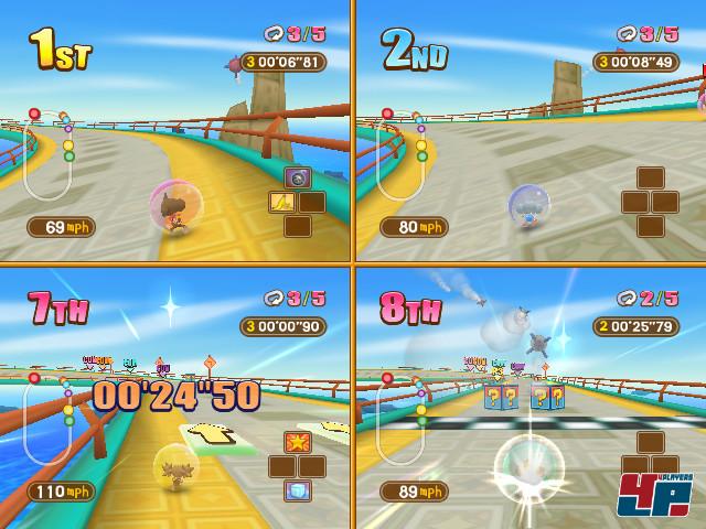 Stets ein elementarer Bestandteil jedes SMB-Titels sind die Mini-Spiele, die auch auf Wii mit bis zu vier Spielern (mal simultan, mal per Hotseat, mal mit Nunchuk, mal ohne) zu Affenpartys einladen. So ist gewährleistet, dass man selbst mit der Minimal-Anforderung von einer Remote plus Nunchuk in den vergleichenden Genuss des menschlichen Wettbewerbs kommen kann. Natürlich gilt aber: Je mehr Spieler mit Komplettausstattung vor dem Bildschirm Platz nehmen, umso umfangreicher wird das Spaßerlebnis.