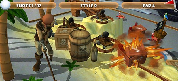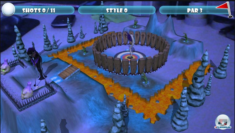 Aber auch abseits dieser unnützen Verschlechterung spielt sich Table Mini Golf bedingt passabel: Die Schlagrichtung hätte etwas feiner sein müssen und das Putten ist zu einfach. Mit diversen sich bewegenden Objekten, alternativen Routen, Steigungen und Beschleunigungsfeldern hat man zwar 36 passable Löcher auf den Tisch gepflanzt, die sich in zwei Themengebiete unterscheiden (Horror und Piraten), leider aber auch Kurse eingebaut, die durch eine zufällige Flippermechanik Frust aufkommen lassen.