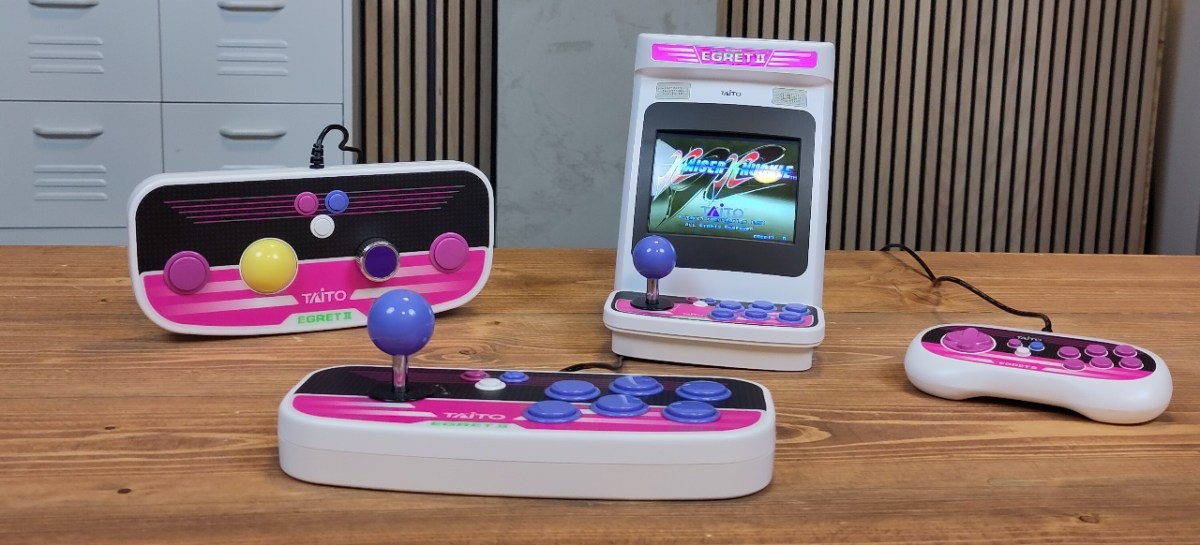Und nun gibt den schon immer mit vielen unterschiedlichen Games bestückten Automaten Egret 2 im Hosentaschenformat – die Mini-Konsolen-Fans unter euch erinnert der Look der kleinen Plastikkiste an das Neo-Geo Mini oder das Astro City Mini, zwei andere Klein-Konsolen der letzten Jahre, die auf ein ähnliches Konzept mit integriertem Bildschirm und Mini-Stick plus -Buttons setzten. Doch wie unser Bildvergleich zeigt ist das Egret 2 Mini ein Riese unter den Zwergen. Es ist deutlich wuchtiger (Maße: 15 x 20 x 21 cm, Gewicht: 1.130 g) als die Konkurrenten und punktet natürlich auch mit einem größeren Screen (Größe: 5 Zoll, Format: 4:3, Auflösung: 1024 x 768) sowie Stick und Knöpfen, mit denen man auch in der Praxis lange zocken kann, ohne sich die Finger zu verkrampfen.