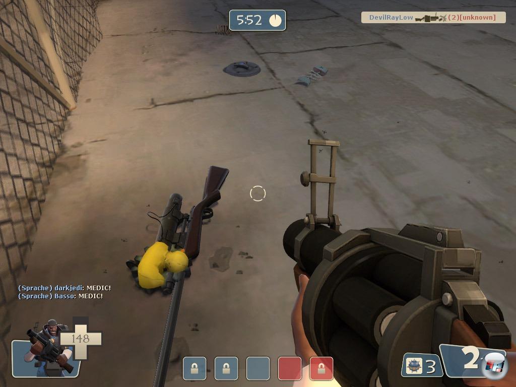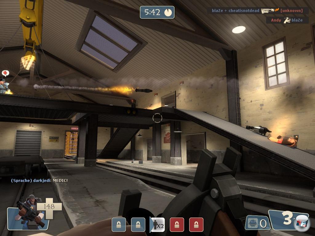 Einen Singleplayer-Modus oder computergesteuerte Bots sucht man vergebens, alles bei Team Fortress 2 ist auf Online-Multiplayer-Duelle via Steam ausgelegt. Während die Breitbandplattform von Valve Software in den ersten Jahren an diversen Kinderkrankheiten litt, funktioniert das Programm mittlerweile ganz gut und lässt euch bequem die Server durchsuchen (oder rausfiltern, meist 16-24 Spieler), Favoriten verwalten und dank der Steam-Community seht ihr, wenn eure Freunde online sind, was sie gerade spielen und in welcher Partie sie sind. Außerdem könnt ihr ihnen Textnachrichten schicken oder euch dem Server anschließen. Lediglich beim Erneuern oder Aufbau der Serverliste kommt es zur Valve-typischen