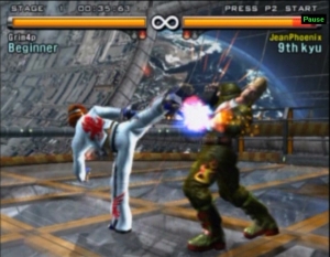 sowie einen Rang. Durch normale Kämpfe und so genannte »Ranking Matches« steigt ihr immer weiter auf, woraufhin natürlich auch die Feinde schwerer werden – während Widersacher im 6. Kyu Lachnummern sind, macht euch eine »Gottheit« das Prüglerleben schwer. Nach jedem Kampf dürft ihr euch den nächsten Gegner unter drei Kandidaten aussuchen, außerdem gibt es aller paar Runden ein »Tekken Roulette« – mit dem ihr euer verdientes Geld bis zu verzehnfachen dürft.Was fängt ein Eisenfäustler mit Geld an? Hier kommt die zweite Parallele zu Virtua Fighter 4 ins Spiel: Mit dem verdienten Schotter dürft ihr eure Kämpfer komplett umgestalten. Das fängt bei neuen Klamotten an, geht über frische Farben für die Kostüme weiter und hört erst bei etlichem Zierwerk auf: So gibt es Samba-Rasseln und schmückende Pfauenfedern für Christie, eine E-Gitarre für Hwoarang, eine Jackie-Chan-Frisur für Lei, einen Heiligenschein für Jin, einen Schnorchel fürs Känguruh oder eine Augenklappe für Paul – die Vielfalt dieser Personalisierung bekommt man besonders gut im Arcade-Modus zu sehen, in dem man gegen immer anders gekleidete Feinde ins Feld zieht. Diese Gimmicks kosten