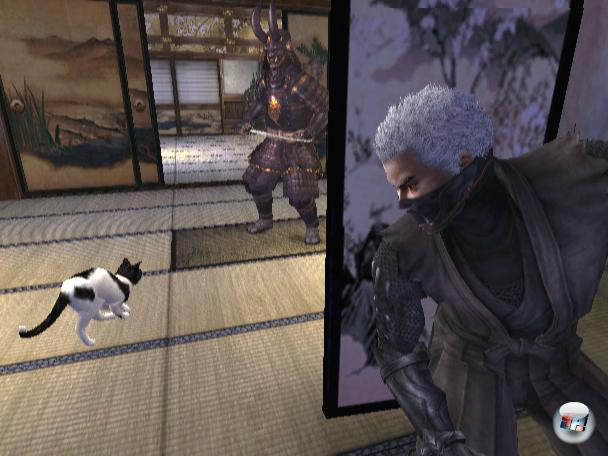 Auch die Angel ist witzig: Man kann mit einem gezielten Wurf entfernte Gegenstände vor den Füßen der Wachen stibitzen – das funktioniert denkbar einfach, wenn man den glitzernden Gegenstand vorher anvisiert. Noch hilfreicher ist die Shinobi-Katze, die man an bestimmten Stellen wie einen vierbeinigen Agenten zur Aufklärung einsetzen kann: Hat man sie entdeckt und aktiviert, kann man in aller Seelenruhe Richtung Schlüssel tapsen, diesen aufnehmen und zurück bringen. Man kann auch miauen, um Wachen abzulenken, die sich evtl. in die eigene Richtung begeben: Leider verhalten sich diese bei Kontakt mit dem Vierbeiner genau so, als hätten sie einen gefährlichen Eindringling und keine harmlose Katze gesehen; auch das trübt die Stimmung. Zwar gibt es nicht mehr so viele frustrierende Fallgruben, aber man sollte sich trotzdem vor Löchern und vor Brunnen in Acht nehmen: Genau so, wie man eine Wache per gezieltem Shuriken-Wurf in die tödliche Tiefe befördern kann, endet man selber dort, wenn man sich über den Rand wagt. Apropos Wurfgeschosse & Co: Die Erfassung möglicher Ziele ist so nachgiebig, dass man nur grob Anvisieren muss, um das Symbol für eine sichere Attacke zu erhalten.