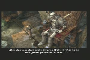 Barde: Also ich fand, dass die Musik immer gut zur jeweiligen Location gepasst hat und die Sound-FX recht solide waren – vor allem in Dolby Digital 5.1 auf der Xbox. Das Highlight ist aber wohl die durchgängige und professionelle Sprachausgabe, bei der die deutsche Fassung dem englischen Original meiner Meinung nach in nichts nachsteht. Trotzdem kann man aber natürlich auch im Originalton spielen – allerdings nicht mit deutschen Untertiteln…