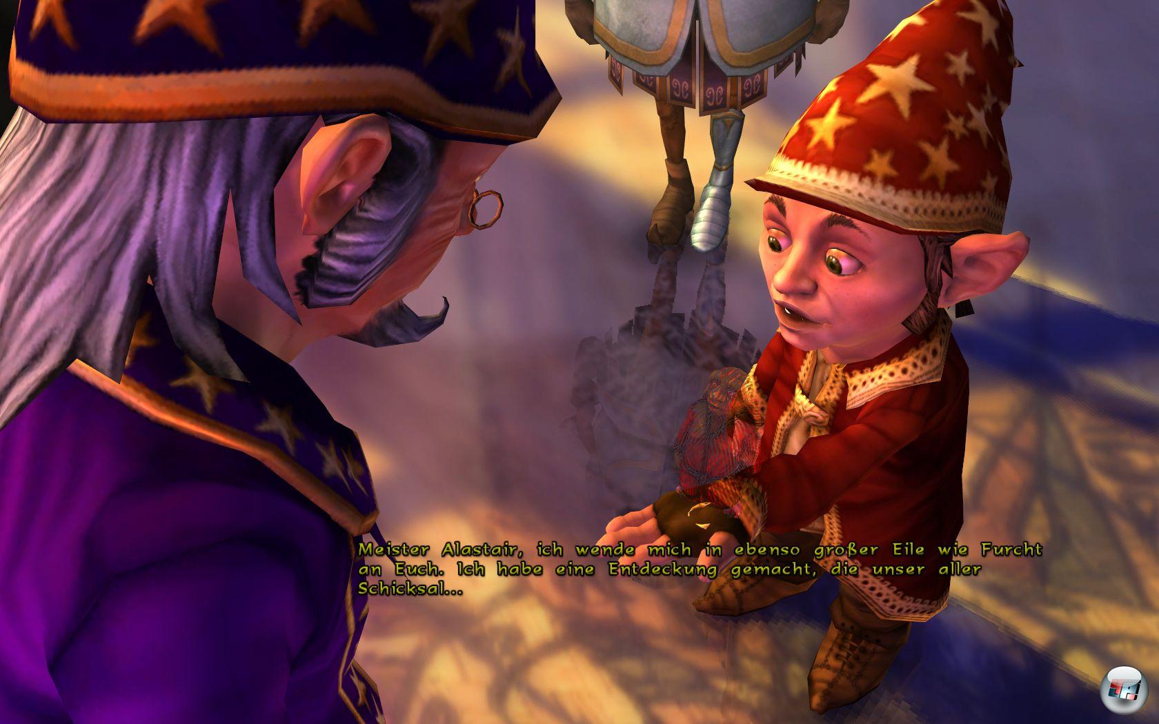 Selbstverständlich ist es enorm wichtig, dass ich den erstaunlich haarigen „Server“ des Spiels korrumpiere. Der kleine Gnom Wilbur ist schließlich auf einer wichtigen Mission, welche den Krieg gegen die tyrannische Schattenarmee und ihren fiesen Obermotz entscheiden kann. Ein alter Gremlin hat ihm einen geheimnisvollen Ring überreicht, welchen er höchstpersönlich beim Erzmagier im oberen Teil der Stadt abliefern muss. Doch dorthin gelangt er nur mit einem ordnungsgemäßen Magier-Diplom, welches ihm nur der zockende Zaubermeister ausstellen kann. Doch der benötigt außerdem ein paar wichtige Zutaten für meine Prüfungsaufgaben wie das Brauen eines magischen Tranks.