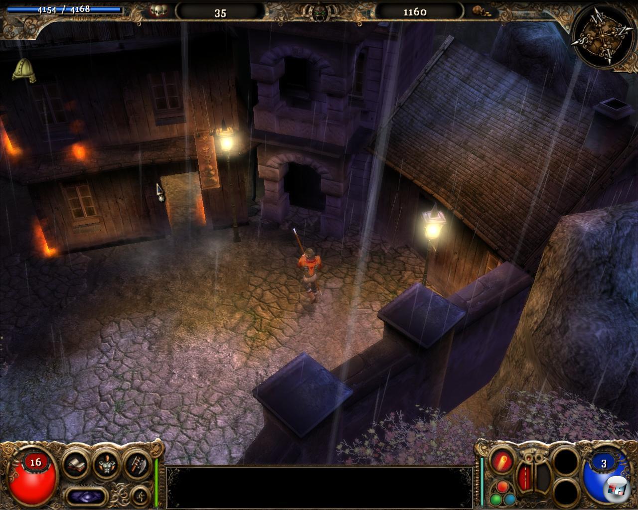 Somit macht ihr euch auf, eine Dämonen-Horde nach der nächsten abzuklappern, gebt euren Gegnern per Mausklick Saures und sammelt fleißig Geld, Waffen, Rüstung, Tränke. Gewiefte Widersacher trefft ihr dabei nicht; dass die Kreaturen schon mal vorsichtig zurückweichen ist das höchste der Gefühle. Mitunter verharren sie sogar so lange an einer Stelle, bis ihr ihnen endlich direkt auf den Pelz rückt. Kommt ihr aus der „falschen“, vom Programm nicht vorgesehenen Richtung, warten sie nämlich brav auf euer Überschreiten ihrer „Aktivierungslinie“. Sinnvoll sind hingegen die in Büschen platzierten Werwölfe: Ihr müsst genau hinsehen, um die Wegelagerer in dem Geäst zu erkennen; bewegt sich die Flora, heißt es wachsam sein. Schützen und Magier mit wachsamem Auge können solche Gegner dafür schon im Vornherein erledigen.