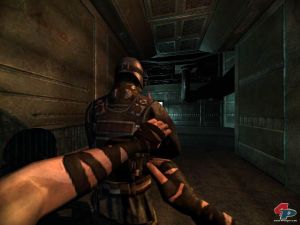 Wer „Pitch Black“ kennt, weiß, dass Riddick im Dunklen dank seiner Augenimplantate (das so genannte Eye Shine) sehen kann. Und genau diese Guckerchen bekommt der Held in den ersten Spielstunden eingebaut, so dass ihr in den finsteren Arealen immer den Überblick behaltet und Feinde rechtzeitig erblickt – egal ob es Polizisten, Spezial-Einheiten, große Monster, kleine Mutanten, Roboter oder Wachleute sind.