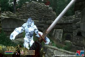 Hinter jeder Ruine steckt eine Quest – oder wenigstens ein Monster: Ihr könnt in Ego- oder Schulterperspektive kämpfen. (360)