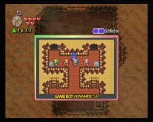 Seid ihr allein unterwegs, wird innerhalb von Dungeons oder Häusern ein viertueller GBA-Screen eingeblendet.