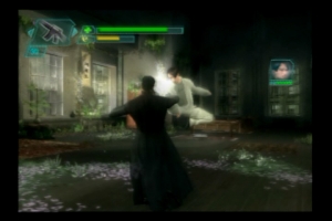 Dazu gesellen sich teilweise extrem schwache, sehr flimmerfreudige Texturen und ein grottig hässlicher Ladebildschirm – die PS2 hat’s wirklich nicht leicht. Auf allen Plattformen sind dazu die Ladezeiten sehr lang, die Schatten schwindfreudig, die Animationen abgehackt. Letzteres geht allerdings auf die Kappe des rasanten Kampfsystems, welches wahrhaft flüssige Bewegungen in alle Richtungen unmöglich macht.Spielerisch geht Neos Pfad teilweise nicht-lineare Wege – allerdings nur so weit, dass euch gelegentlich die Wahl des nächsten Levels überlassen wird. So müsst ihr verschiedene Personen in freier Reihenfolge befreien, was u.a. eine extrem nervende Bibliothekarin beinhaltet, der man aufgrund ihres Gekreisches sehr schnell mehr als alles andere den gesamten Brockhaus in die Kehle stopfen möchte. Außerdem gibt es immer wieder die Möglichkeit, einen Abschnitt auf unterschiedliche Art und Weise zu beenden. So könnt ihr gleich zum Spielbeginn auf der Flucht vor den Agenten eine (filmgetreue) Verhaftung akzeptieren, was einen zusätzlichen Level beinhaltet. Außerdem bietet euch das Game ein komplett neues und reichlich bizarres Ende, was u.a. einen sehr abgefahrenen Auftritt der Wachowski-Brüder (die Matrix-Erfinder) beinhaltet.