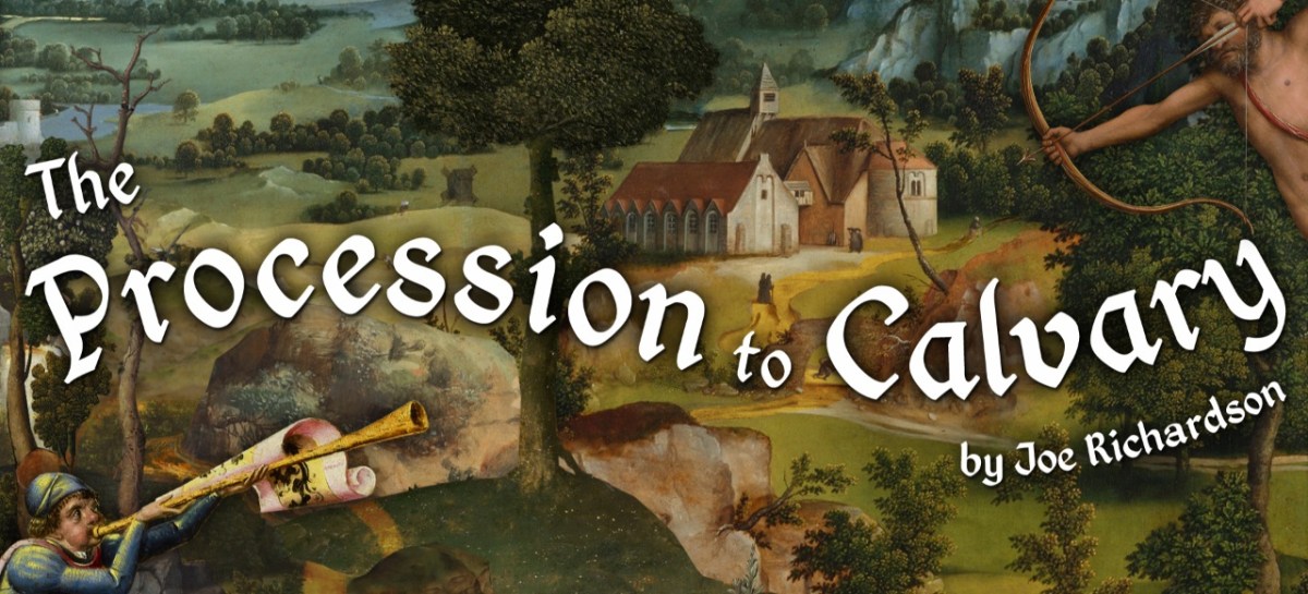 The Procession to Calvary lebt von den Werken der großen Maler aus Renaissance und Barock. Richardson nahm sich unterschiedliche Gemälde, teilte und mischte sie und schuf damit eine künstlich-mittelalterliche Welt mit all ihrer Skurrilität. Auch die Figuren stammen aus den Bildern und bewegen sich steif wie Papierpuppen aus einem Schattentheater. Untermalt werden die Szenen von klassischer Musik. Alles zusammen ein etwas altbackener Mix, der durch ein verbindendes Element jedoch seinen ungewöhnlichen Charme erhält: ein pechschwarzer Humor.