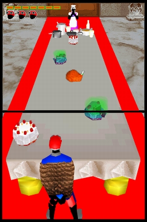 Hektischer wird’s im »Hullabaloo«: Theoretisch können hier unendlich viele Spieler mitmachen, denn der DS wird fleißig weitergegeben. Bestimmte Tasten werden eingeblendet, die gedrückt gehalten werden müssen – und zwar von zwei Personen! Der erste drückt die vorgegebene Kombination und hält sie, danach ist der zweite dran. Der erste muss nun loslassen und weitergeben usw. – eine Art Twister am DS. Wie auch sonst überall im Spiel werdet ihr auch hier von sehr abgefahrener Musik begleitet, bestehend aus beschwingten Rhythmen, schrägem Gesang, Gepfeife und Gesumme. Sehr ungewöhnlich, sehr eingängig, sehr Fußwipp-kompatibel – aber wie schon bei We love Katamari keinesfalls jedermanns Sache.