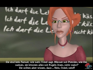 sollte dem Sound gewidmet werden: Die Musik schallt in typischer Spaghetti-Western-Manier aus den Boxen, allerdings klingen die Instrumente teilweise etwas synthetisch. In ruhigen Momenten werdet ihr außerdem von einem an Fahrstuhlmusik erinnernden Gedüdel begleitet, das aber nie nervt. Das Highlight ist aber ganz klar die deutsche Sprachausgabe: Witzig, nur mit wenigen Wiederholungen und durch die Bank toll gesprochen – so wollen wir das hören! Auf Wunsch könnt ihr euch auch Untertitel einblenden lassen, die bis auf wenige Schreibfehlerchen an die Qualität der Sprachausgabe anknüpfen. Alt-Abenteurer werden sich über die zweite in der Schachtel befindliche CD freuen, auf der sich Fenimore Fillmores erstes Adventure »3 Skulls of the Toltecs« befindet – ein klassisches 2D-Geklicke.