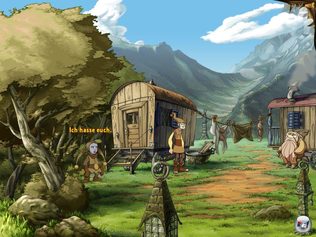 Die Geschichte schlägt in die selbe Kerbe wie „The Book of Unwritten Tales“: Wie in King Art Games Konkurrenztitel versucht man auch hier als ein kleiner, nicht sonderlich wehrhafter Protagonist eine Bedrohung durch fiese Finsterlinge von einer Fantasywelt abzuwenden. Es gibt noch weitere Parallelen, die ich euch aufgrund von Spoiler-Gefahr aber lieber nicht verrate. Sadwicks Charakter ist allerdings das krasse Gegenteil des naiven Gnoms Wilbur: Der chronisch depressive Clown lässt keine Gelegenheit aus, seiner Umwelt mitzuteilen, wie sehr ihn das Dasein als Lachnummer im Wanderzirkus anödet. Er hasst sein albernes Kostüm, den täglichen Arbeitstrott als lebende Kanonenkugel, das senile Gefasel seines Opas und die altklugen Sprüche seines besserwisserischen Bruders Ben.