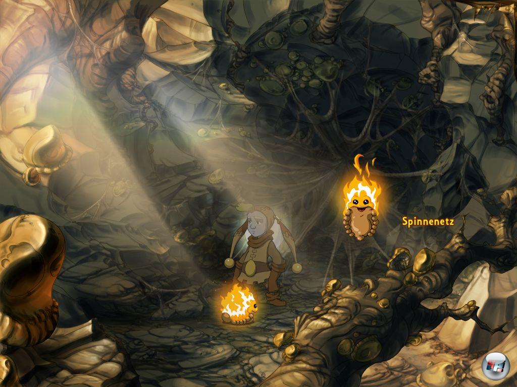 Hat er sich mit Wasser vollgesogen, mutiert er zur rollenden Kugel. Der grüne Ball lässt sich z.B. benutzen, um Dinge zu beschweren oder um brüchige Objekte mit seinem Gewicht von der Wand abzubrechen. Im Laufe des Spiels lernt der Sidekick noch einige weitere Funktionen: Als lodernder Feuerspot kann er z.B. mit seinem Feueratem leicht entzündliche Hindernisse aus dem Weg brutzeln. Die nützliche Raupe lässt sich wie ein Inventar-Gegenstand aufnehmen und am gewünschten Ort platzieren.Die Steuerung geht insgesamt leider einen Deut weniger flüssig von der Hand als bei der Konkurrenz. Ab und zu reagieren der Held oder ein Objekt erst auf den zweiten Klick und in seltenen Fällen scrollt auch die Kamera nicht mit, wodurch Sadwick und Spot aus dem Bild laufen. Auch das Aufrufen der Menüs erfordert eine kurze Eingewöhnung: Zielt man auf ein interessantes Objekt und hält man die linke Taste gedrückt, erscheint nach kurzer Zeit ein kleines Menü. Wählt man das Auge aus, nimmt Sadwick etwas unter die Lupe, mit der Hand können Gegenstände genommen werden, um sie z.B. mit anderen zu kombinieren. Das Lippen-Symbol dient dazu, mit Menschen zu sprechen, etwas zu essen oder andere Dinge wie pusten mit dem Mund zu erledigen. Ab und an muss auch ein Minispiel wie ein Brettspiel oder ein Zahnradrätsel gemeistert werden.