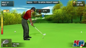 Dass Internet-Partien wegen fehlender Teilnehmer ausfallen, hätte ich verkraften können, allerdings dürft ihr auch ohne angeknipsten WiFi-Schalter lediglich die Karriere, zwei Minispiele sowie vier Versionen des Zählspiels bestreiten. Das ist zwar mehr als im vergangenen Jahr, kann dem Umfang auf Konsolen aber nicht das Wasser reichen. Immerhin: Es gibt endlich eine vollständige PGA Tour, bei der ihr euch drei Jahre lang in gewöhnlichen Austragungen sowie Putt- oder Minispiel-Herausforderungen (der bekannte Putt-Rausch sowie eine Zielscheibe, auf der verschiedene Trefferzonen unterschiedlich viele Punkte bringen) beweisen müsst. Und auch im Internet bieten PS2 und vor allem 360 wesentlich mehr, da ihr dort ganze Turniere austragen könnt und auf Microsofts Konsole täglich eine neue Herausforderung findet. Schade übrigens, dass EA den Legendenmodus des Vorjahres nicht weiter entwickelt. Die Partien gegen Golfgrößen vergangener Tage waren stimmungsvoll – ich hätte gerne eine komplette Karriere in der Vergangenheit erlebt.
