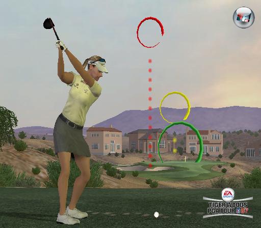Bei der Steuerung der PGA Tour hingegen gibt es nur eine weitestgehend absolute Variante: Selbst wenn ich die Remote nur ganz leicht nach hinten bewege, zieht Tiger (bzw. jeder andere ausgewählte Golfer) die Keule trotz allem bis zum Maximum durch. Der Unterschied (und damit auch die Möglichkeit), sich eventuell für „Halbschläge“ etc. zu entscheiden und damit die Schlagstärke zu variieren, liegt in der Geschwindigkeit eures Schwungs. Denn geht ihr nur langsam in Schlagposition, führt auch Tiger seinen Schwung langsam durch, so dass ihr die Möglichkeit habt, nach vorne durchzuziehen, bevor er in der „Endposition“ angekommen ist.