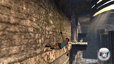 Ein Rauschen erfüllt den schmalen Korridor, der durch zerklüftete Felswände führt. Ein wenig zaghaft drücke ich den Analogknubbel der PSP nach vorne, um Lara nicht blindlinks in die nächste Falle tappen zu lassen. Kenne ich die Situation von früher? War dort nicht ein Vorsprung, an dem ich emporklettern konnte?