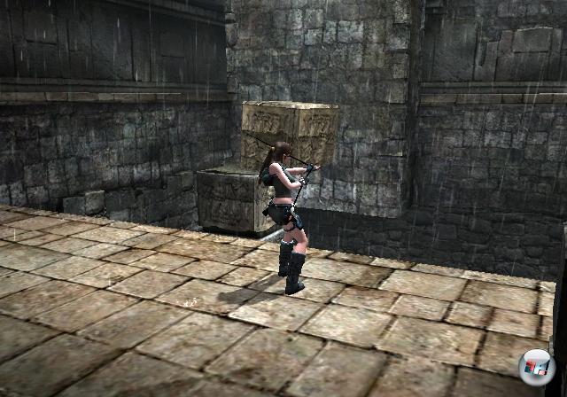 Wer einmal auf Wii Metroid Prime 3 gespielt hat, wird sich schon hier wie in der Steinzeit des Action-Adventures vorkommen und des Öfteren wie der Ochs im Walde stehen. Dieser Eindruck entsteht aber vor allem aufgrund der Kamera: Diese sorgte zwar schon auf PS3 und Xbox 360 für nervige Perspektivprobleme, aber auf Wii artet sie schlichtweg in ein frustrierendes Gezappel aus – man kommt beim Hangeln und Klettern selten in eine ruhige Aussicht. Hinzu kommt, dass sich beim Drehen und Neigen des Blickwinkels über das Steuerkreuz immer wieder böse Clippingfehler zeigen, die es in dieser Fülle bisher auf keinem System gab – die Kulisse wirkt einfach nicht rund. Überhaupt hat sich grafisch gegenüber Tomb Raider: Anniversary <a class="DYNLINK" onmouseover="DynToolTipp_Show('Klicken für Gameinfos‚)“ onmouseout=“DynToolTipp_Hide(); “ href=“javascript:DynCont_Display(‚Gamefinder‘,’runmod.php?sid=%7BSID%7D&LAYOUT=dyncont_gf&spielid=11785′)“> nichts getan; Spiele wie Disaster: Day of Crisis <a class="DYNLINK" onmouseover="DynToolTipp_Show('Klicken für Gameinfos‚)“ onmouseout=“DynToolTipp_Hide(); “ href=“javascript:DynCont_Display(‚Gamefinder‘,’runmod.php?sid=%7BSID%7D&LAYOUT=dyncont_gf&spielid=9813′)“> oder Metroid Prime 3 <a class="DYNLINK" onmouseover="DynToolTipp_Show('Klicken für Gameinfos‚)“ onmouseout=“DynToolTipp_Hide(); “ href=“javascript:DynCont_Display(‚Gamefinder‘,’runmod.php?sid=%7BSID%7D&LAYOUT=dyncont_gf&spielid=9780′)“> sehen eine Klasse besser aus.