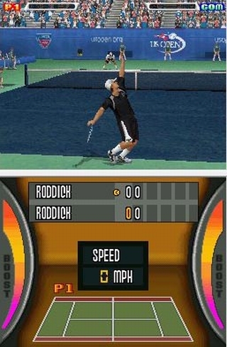 Abgesehen davon verlässt sich die Handheld-Fassung auf bewährte Serien-Tugenden: Slice, Top Spin, Lob, Stop sowie flache Schüsse sind ebenso möglich wie Risikoschläge über die Schultertasten. Dabei müsst ihr im Vergleich zu PS3 oder 360 nicht früh loslassen, damit euer Profi die Schlagbewegung ausführt – das einfache Gedrückthalten der entsprechenden Schusstaste reicht aus. Außerdem dürft ihr die Schlagtaste erst dann drücken, wenn der Gegner am Ball war. Eine Besonderheit der diesjährigen Ausgabe müssen allerdings auch DS-Sportler beherrschen: das geschickte Stellungsspiel. Zwar rutschen die Profis die letzten Dezimeter auch selbstständig in Richtung Ball – wobei sie mitunter einen seltsam fehlerhaften Überschlag (!) hinlegen – und ihr werdet für schlechtes Stellungsspiel nicht allzu hart bestraft. Doch harte, gut platzierte Schüsse gelingen nur, wenn ihr den Ball im richtigen Winkel trefft. Falls nicht, muss euer Alter Ego den Schläger hochkant halten oder durch die Beine schlagen – mehr als ein Schüsschen ist so nicht drin, schlimmstenfalls landet der Ball sogar im Aus.