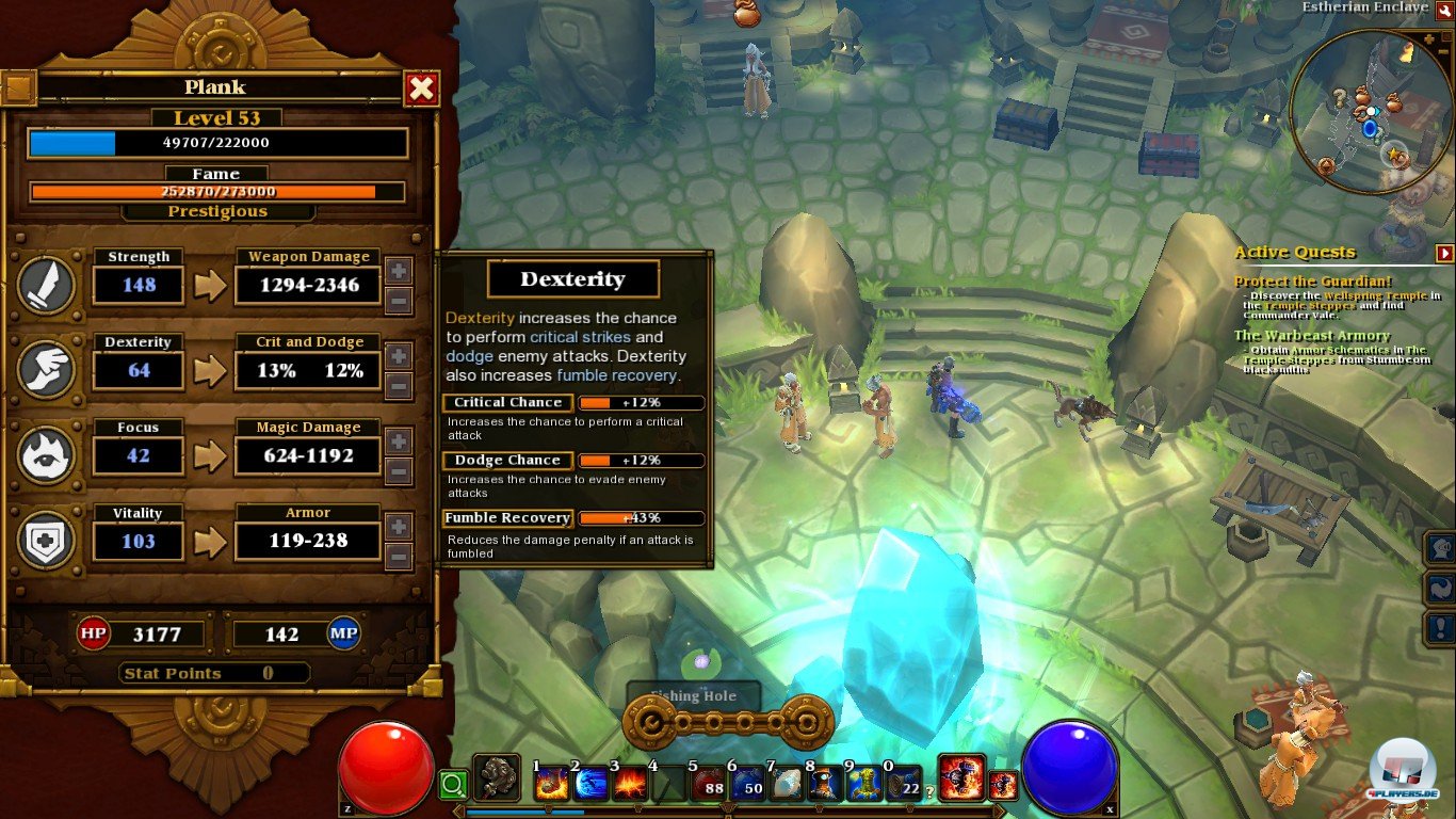 Neben den Frontkämpfern lauert der magisch begabte „Embermage“ als Glaskanone (macht viel Schaden, hält wenig aus), der sich aus Feuer-, Eis- oder Blitz-Magietalenten bedienen kann. Die vierte und letzte Klasse ist der „Outlander“ als eine Art naturverbundener Scharfschütze mit Hang zu schurkischen Magien. Das Aussehen sämtlicher Charaktere kann zu Beginn des Spiels mit wenigen Gesichtern, Frisuren und Farben minimalistisch festgelegt werden – eine Option, die es bei Diablo III gar nicht gibt.