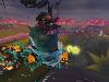 Um einen der von Totems geschützten „Tresore“ mit den Machtkugeln zu öffnen, braucht unser so genannter L.O.A.D. STARR die Energie der Feuergeister. Das Gerät kommt außerdem schon deshalb mit, weil es einen dichten Wolkenteppich für den sonnenallergischen Zephyr erzeugt. Also staubsauge ich so lange in jeweils drei streng begrenzten wolkigen Abschnitten, bis ich genug Feuergeister aufgewirbelt habe. Drei Minuten bleiben mir dafür, und wenn ich mehrere der Geister am Stück erwische, spendiert mir das ein paar mehr Sekunden. Ganz so einfach ist das natürlich nicht. Zum einen verstellt mir nämlich mein eigener Tornado spätestens dann die Sicht, wenn er zu voller Größe gewachsen ist. Zum anderen verstecken sich die Fackelwesen in unterschiedlich großen Objekten. Am besten nehme ich mir die markierten Positionen also erst dann vor, wenn ich groß genug bin. Swooosh – das gibt einen netten Bonus! Na ja, wobei das kaum mehr ist als der Bonus für mehrere kleine Mengen Feuergeister und man ähnliche Finessen beinahe mit der Lupe sucht. Per Sprungkick kann man zwar Steinwesen aus dem Erdreich buddeln, aber wesentlich größer wird der spielerische Horizont dadurch kaum. Sind jedenfalls genug Feuergeister im Pott,