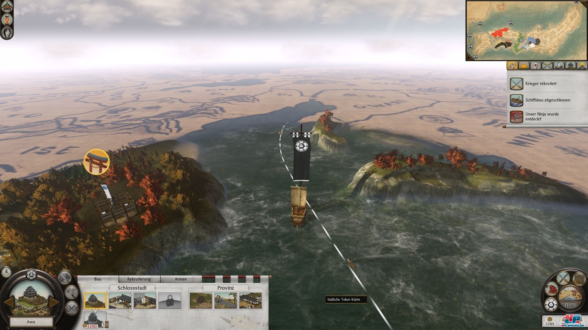 Schön und bekannt ist, dass Truppen unter Verschleiß leiden und empfindliche Verluste hinnehmen, wenn sie jenseits der Festung kampieren – hier sorgt der Winter dafür. Die Figuren auf der Karte sind zudem größer und detaillierter als noch in Empire: Man kann erkennen, wie sich der Ninja katzengleich inkl. Schattenwurf dem General nähert oder wie die Geisha zu ihrem Opfer tippelt. Zum ersten Mal verändern die Figuren mit gewonnener Erfahrung übrigens auch ihr Aussehen. Die Karte ist mit ihrem smaragdgrünen Meer ein Schmuckstück, das man sich sehr gerne anschaut.