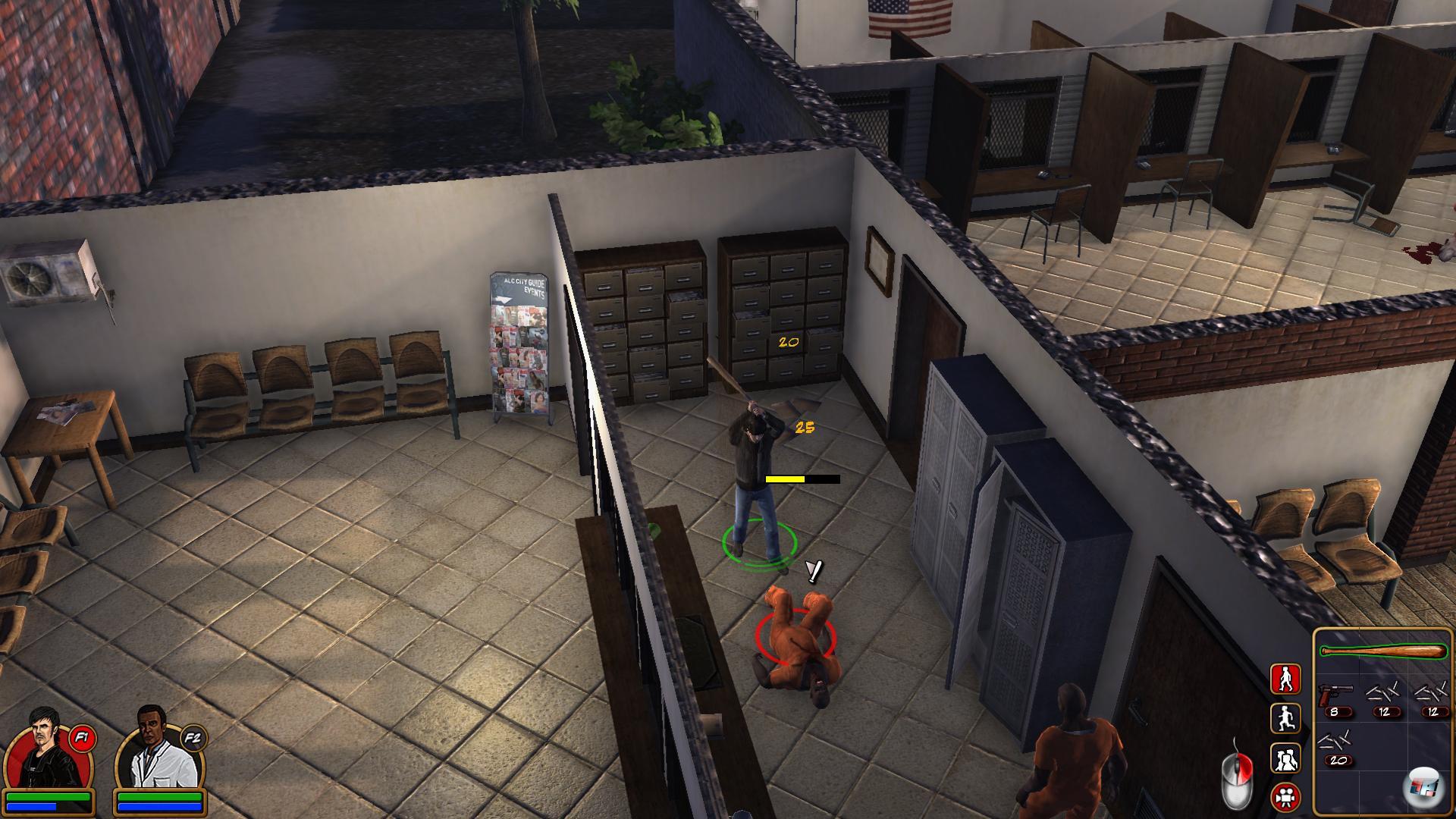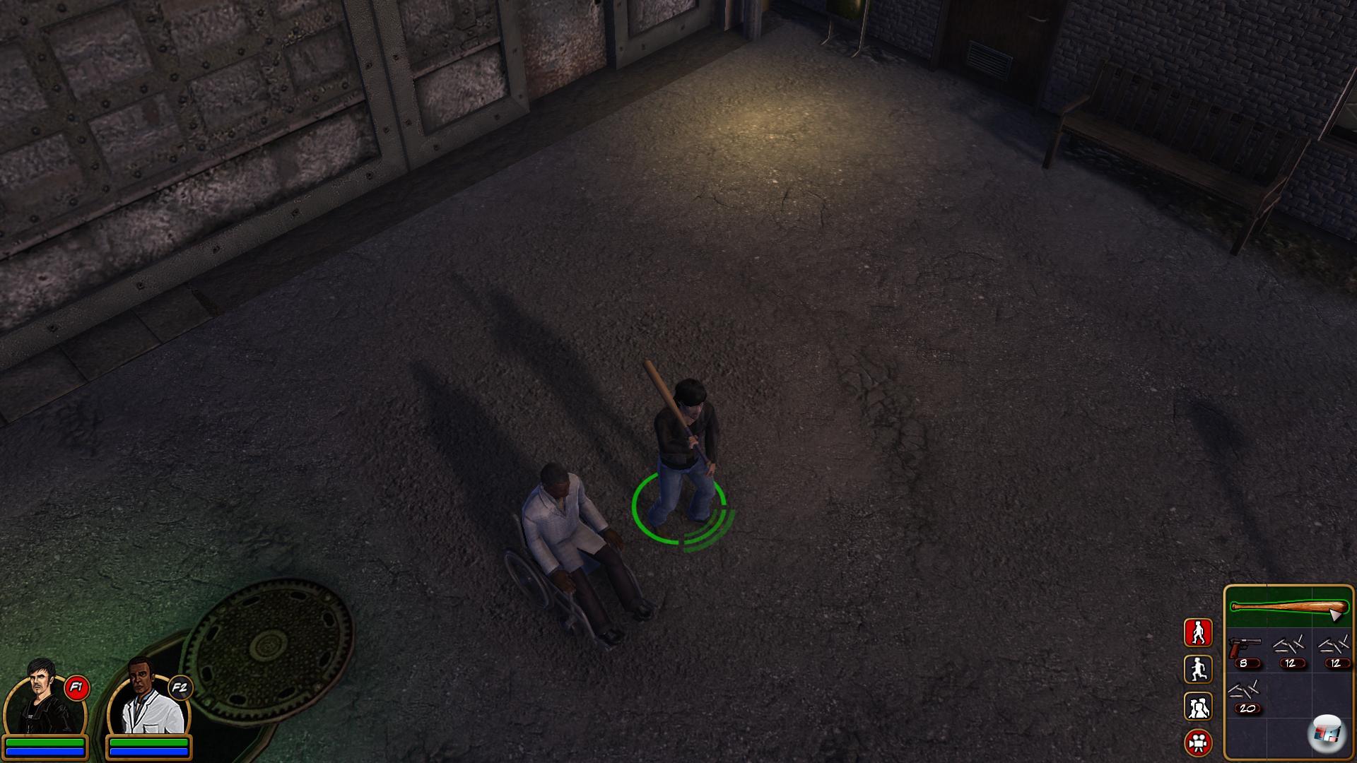 der sich durchs postapokalyptische Amerika kämpft. Die zaghafte Einführung spielt an einer Tankstelle, wo einem die ersten Zombies begegnen, aber auch die Steuerung erklärt wird. Danach geht’s ins Romero-Krankenhaus, wo die Toten quicklebendig ihre Runden drehen. Dann darf man in den Knast und den Waffenladen. Der Held trifft ein paar Leute, die ihm weiterhelfen, wie der Arzt im Rollstuhl, der Wunden heilt und so den Lebensbalken auffrischt. Dennoch bleiben die Charaktere weitgehend schemenhaft, da ihnen Tiefe fehlt. Persönliches blitzt selten durch, weshalb einem die Leute auch nicht groß ans Herz wachsen. Klar muss das in einem Actionspiel nicht unbedingt sein, aber es würde gerade die Stimmung in einem Zombiespiel aufwerten.